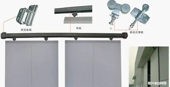 4、根據(jù)門體承重形式分為上承重和下承重兩種,當門口上方具備安裝承重軌道及設(shè)備時,采用上承重懸掛式;若不具備條件, 則可以采用下承重支撐式。