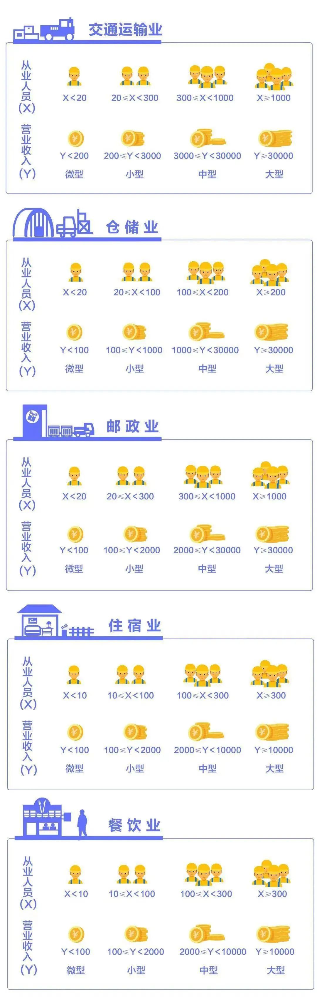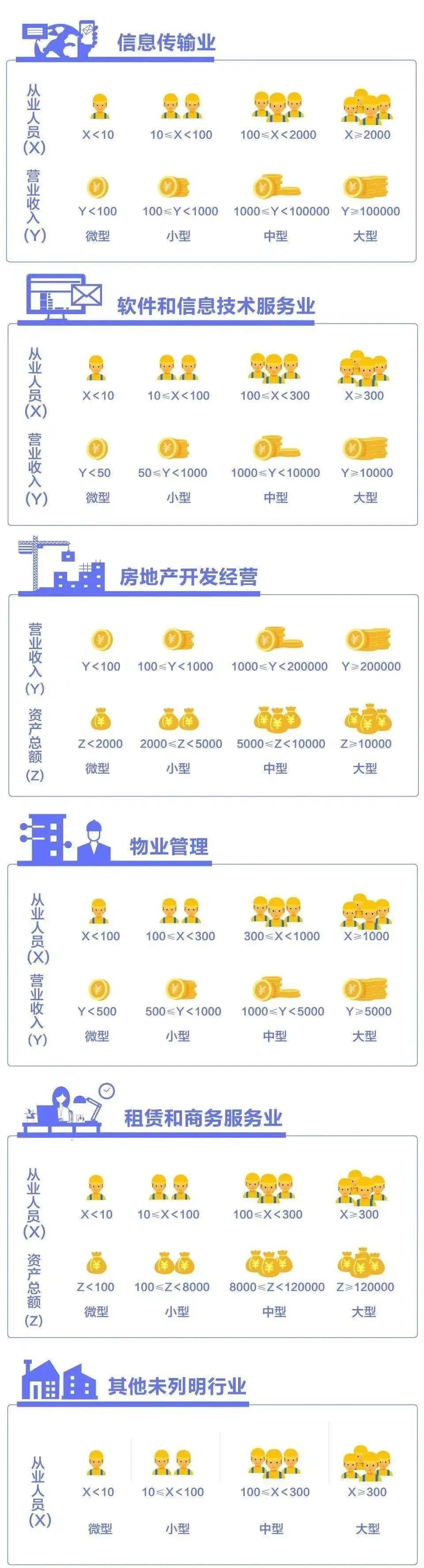 營業(yè)收入80000萬元以下或資產(chǎn)總額80000萬元以下的為中小微型企業(yè)。其中,營業(yè)收入6000萬元及以上,且資產(chǎn)總額5000萬元及以上的為中型企業(yè);營業(yè)收入300萬元及以上,且資產(chǎn)總額300萬元及以上的為小型企業(yè);營業(yè)收入300萬元以下或資產(chǎn)總額300萬元以下的為微型企業(yè)。