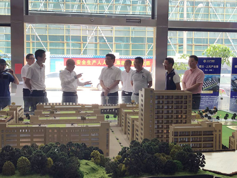2020年6月28日,永嘉縣常務(wù)副縣長林建波率領(lǐng)各部門蒞臨永嘉上元產(chǎn)業(yè)港,就2020年第二次“溫州擂臺•六比競賽”縣(市、區(qū))、產(chǎn)業(yè)集聚區(qū)項(xiàng)目比看(比質(zhì)量、比位次、比創(chuàng)新、比項(xiàng)目、比環(huán)境、比擔(dān)當(dāng))活動,對我集團(tuán)產(chǎn)業(yè)港展廳及施工現(xiàn)場進(jìn)行考察,永嘉縣東城街道陳雙義主任、謝永長主任,永嘉上元產(chǎn)業(yè)園開發(fā)有限公司董事長林平、集團(tuán)副總裁孫作夏等有關(guān)領(lǐng)導(dǎo)陪同。