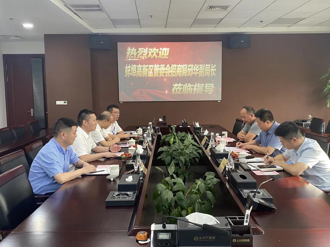 2021年7月13日,蚌埠國家級高新技術(shù)開發(fā)區(qū)管委會招商局副局長邱華、招商局辦公室主任程海涌一行赴上元集團(tuán)、永嘉上元產(chǎn)業(yè)港、甌江上元產(chǎn)業(yè)港參觀考察。