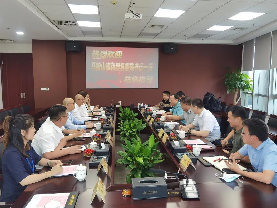 2021年9月2日,馬鞍山市和縣縣委書記陳永紅,馬鞍山市委臺(tái)辦副主任熊賢達(dá),馬鞍山市和縣縣委常委、縣經(jīng)開區(qū)黨工委第一書記張宏明等一行領(lǐng)導(dǎo)赴上元集團(tuán)、壺鎮(zhèn)上元產(chǎn)業(yè)港參觀考察。上元集團(tuán)董事長(zhǎng)林平、上元集團(tuán)副總裁吳秀炯、上元集團(tuán)副總裁王良鐸及各部門負(fù)責(zé)人陪同接待。