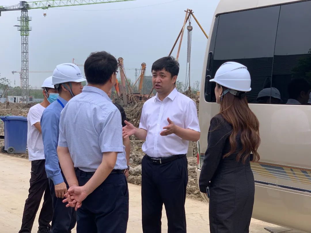 在項(xiàng)目工地現(xiàn)場,項(xiàng)目常務(wù)副總經(jīng)理方匡國向領(lǐng)導(dǎo)一行介紹了項(xiàng)目的詳細(xì)情況,并匯報(bào)了項(xiàng)目最新的工程進(jìn)度,項(xiàng)目目前的招商情況等。他表示:項(xiàng)目落地后在政府部門和園區(qū)領(lǐng)導(dǎo)的大力支持下各項(xiàng)工作都在高效有序地推進(jìn),目前項(xiàng)目已完成90%的樁基礎(chǔ)施工。