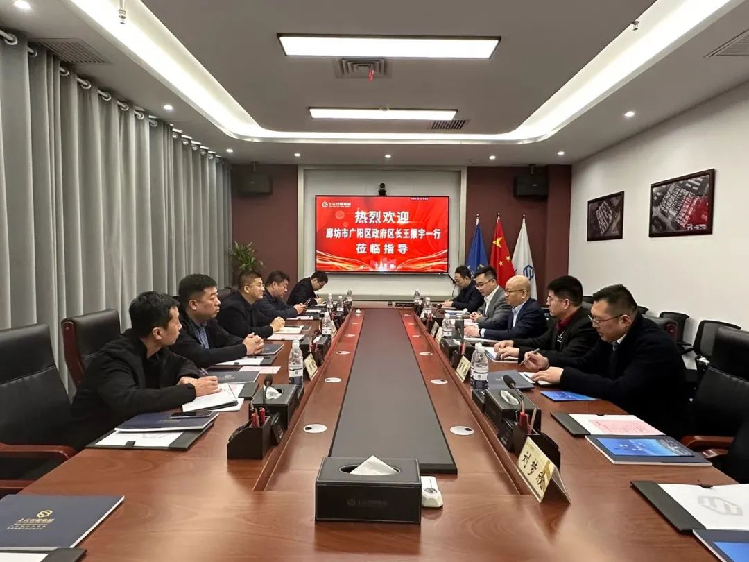 2023年2月28日,廊坊市廣陽區(qū)區(qū)長王振宇、廣陽區(qū)政府辦主任白偉、廣陽區(qū)招商中心主任王開國、廣陽經(jīng)開區(qū)包聯(lián)干部郭超、廣陽區(qū)政府辦干部張星博、精數(shù)智能科技發(fā)展有限公司創(chuàng)始人陳龍、精數(shù)智能科技發(fā)展有限公司副總薛景超等一行赴上元控股集團北京總部參觀考察。