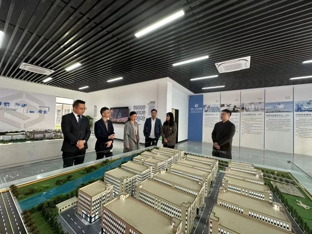 考察團(tuán)一行領(lǐng)導(dǎo)首先來到南潯·上元產(chǎn)業(yè)港營銷中心,觀看了集團(tuán)宣傳片。在參觀項(xiàng)目沙盤的過程中,招商主管向考察團(tuán)一行介紹了項(xiàng)目整體布局情況、園區(qū)配套、企業(yè)入駐等方面。