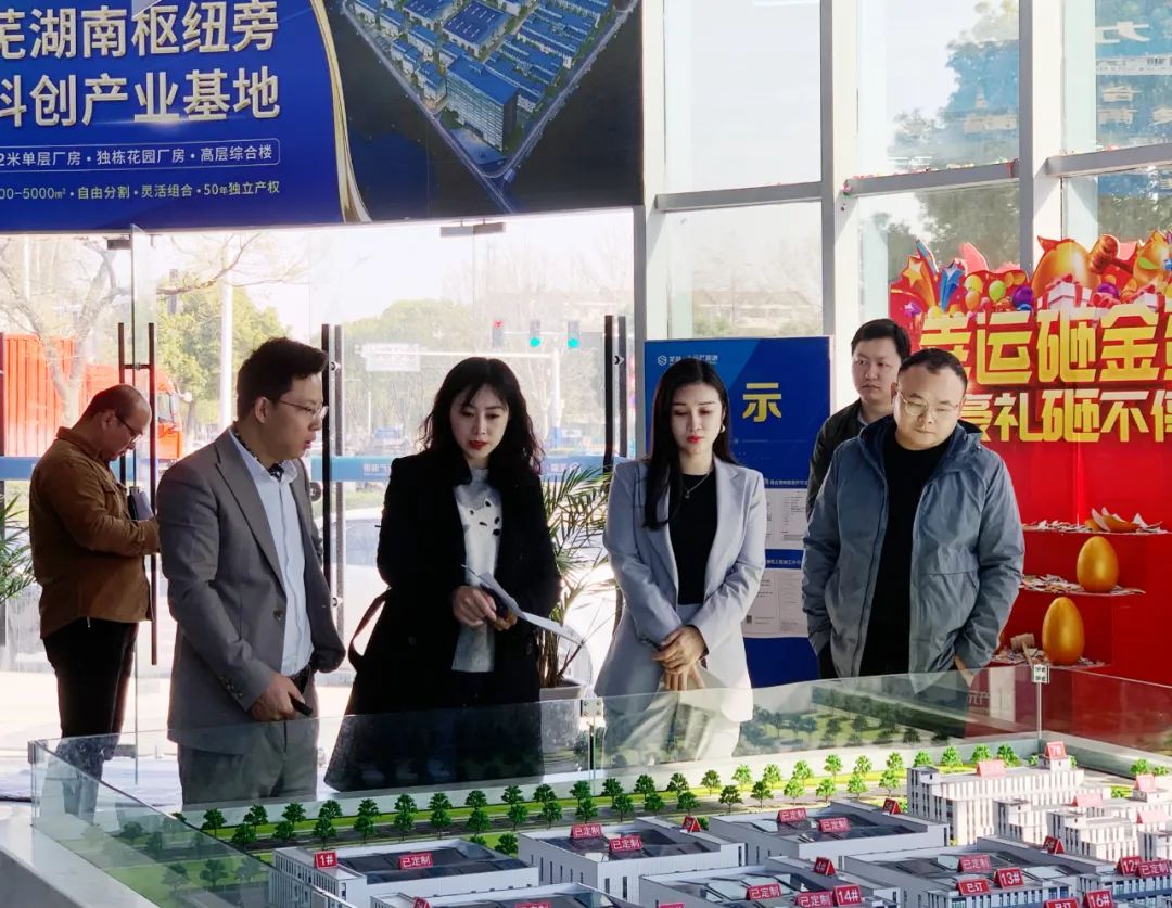 在招商中心,項(xiàng)目招商負(fù)責(zé)人陳海向弋江區(qū)政府領(lǐng)導(dǎo)一行介紹了項(xiàng)目整體產(chǎn)品概況、區(qū)位情況,未來發(fā)展規(guī)劃,并匯報(bào)了項(xiàng)目最新的工程進(jìn)度,招商進(jìn)展等。項(xiàng)目自2022年落地后在政府部門和園區(qū)領(lǐng)導(dǎo)的大力支持下各項(xiàng)工作都在高效有序地推進(jìn)中。