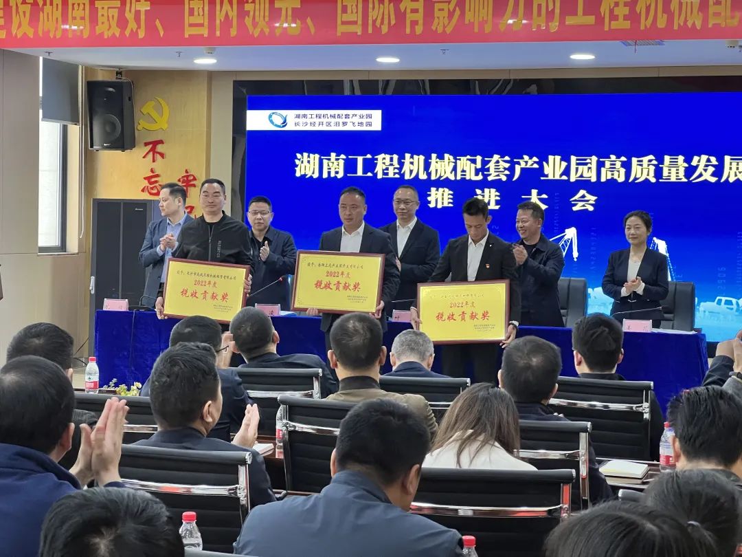 2023年3月13日,在湖南工程機(jī)械配套產(chǎn)業(yè)園高質(zhì)量發(fā)展推進(jìn)大會(huì)上長(zhǎng)沙(汨羅)上元產(chǎn)業(yè)港(岳陽(yáng)上元產(chǎn)業(yè)園開發(fā)有限公司)被授予汨羅市“龍虎榜”項(xiàng)目快速推進(jìn)獎(jiǎng)和2022年度稅收貢獻(xiàn)獎(jiǎng)!