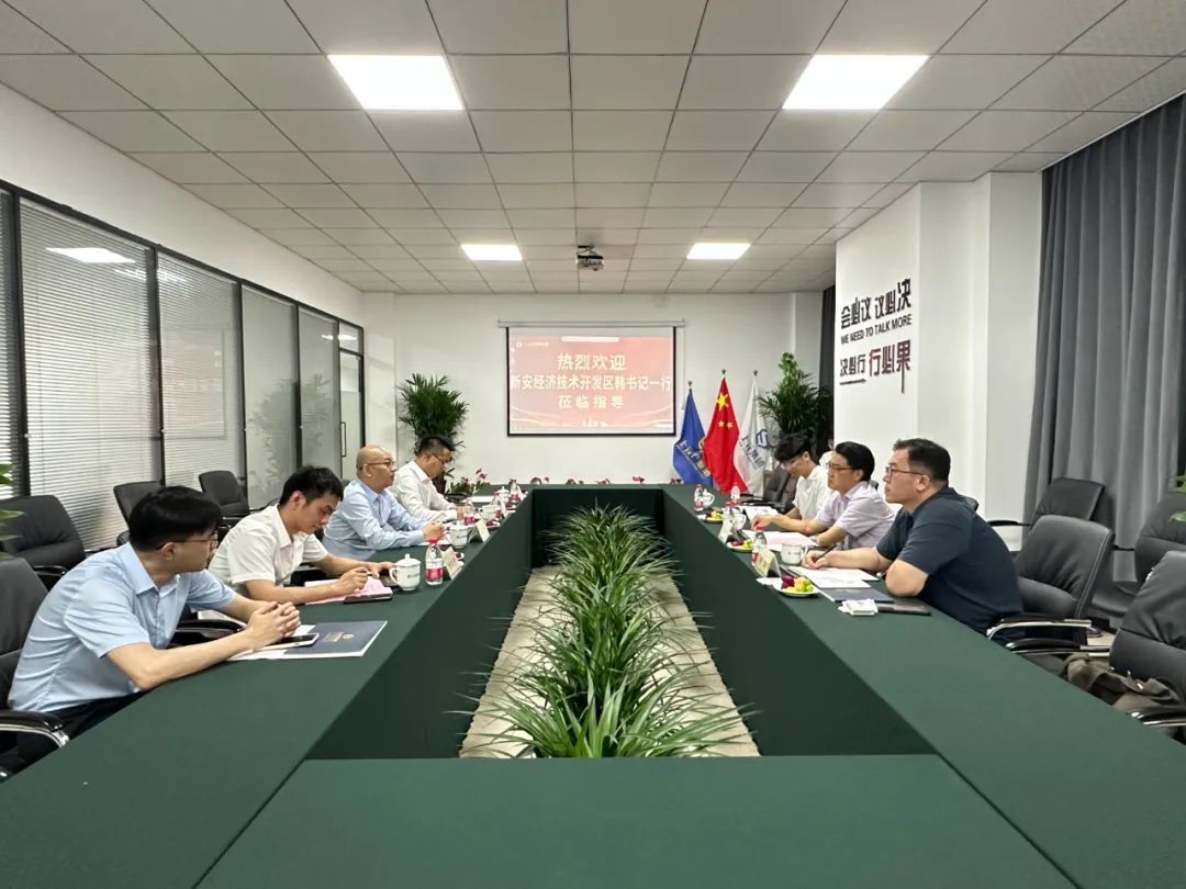 2023年7月21日,新安經(jīng)濟(jì)技術(shù)開發(fā)區(qū)黨工委書記、管委會(huì)主任韓少峰,新安經(jīng)濟(jì)技術(shù)開發(fā)區(qū)投資促進(jìn)部部長(zhǎng)李治等一行領(lǐng)導(dǎo)赴南潯·上元產(chǎn)業(yè)港參觀考察。上元控股集團(tuán)董事長(zhǎng)林平、副總裁梅建剛、浙北區(qū)域總經(jīng)理付優(yōu)奇及各部門負(fù)責(zé)人陪同接待。