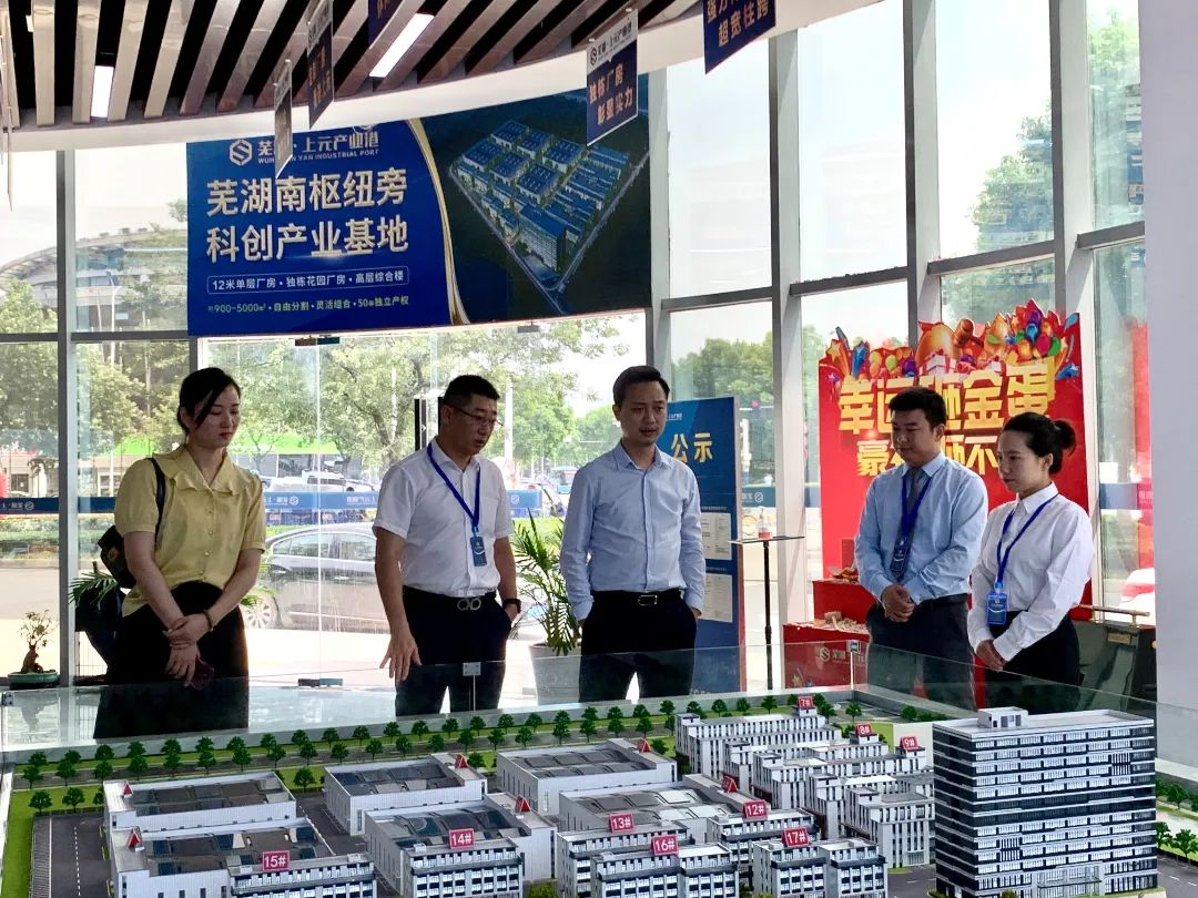 2023年7月25日,匯峰跨境集團(tuán)總經(jīng)理鮮尙輯一行蒞臨蕪湖·上元產(chǎn)業(yè)港調(diào)研考察。蕪湖·上元產(chǎn)業(yè)港項目常務(wù)副總經(jīng)理耿軼及各部門負(fù)責(zé)人陪同接待。