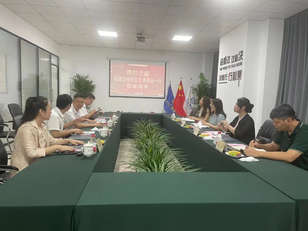 2023年7月25日,石家莊經(jīng)開(kāi)區(qū)投資服務(wù)局局長(zhǎng)張燕、石家莊經(jīng)開(kāi)服務(wù)局孫絢麗、杜麗帆、劉丹等一行領(lǐng)導(dǎo)赴南潯·上元產(chǎn)業(yè)港參觀(guān)考察。上元控股集團(tuán)市場(chǎng)拓展中心總監(jiān)葉舒斯、浙北區(qū)域總經(jīng)理付優(yōu)奇及各部門(mén)負(fù)責(zé)人陪同接待。