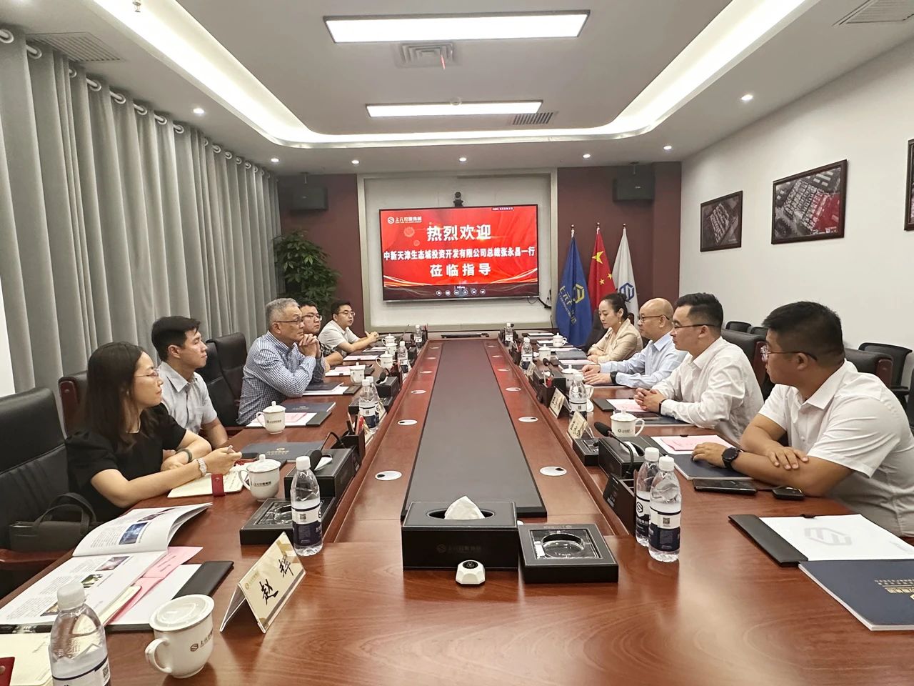 8月3日,中新天津生態(tài)城投資開發(fā)有限公司總裁張永昌、副總裁劉嘉、副總裁陳軍翰、新事業(yè)部總經(jīng)理黃豐才、產(chǎn)業(yè)發(fā)展部副總經(jīng)理白晶等一行赴上元控股集團(tuán)北京總部參觀考察。上元控股集團(tuán)董事長(zhǎng)林平、副總裁王馬偉及各部門負(fù)責(zé)人陪同接待。
