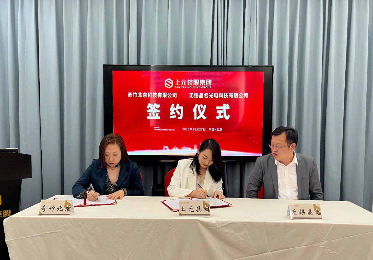 投資總監(jiān)劉宸妡代表上元控股集團(tuán)與無(wú)錫晶名光電科技有限公司、奇竹(北京)科技發(fā)展有限公司簽訂戰(zhàn)略合作協(xié)議,共同為促進(jìn)傳統(tǒng)產(chǎn)業(yè)轉(zhuǎn)型升級(jí),推動(dòng)中國(guó)產(chǎn)業(yè)園高質(zhì)量發(fā)展提供助力。上元控股集團(tuán)作為國(guó)內(nèi)領(lǐng)先的產(chǎn)業(yè)園區(qū)綜合投資運(yùn)營(yíng)商,長(zhǎng)期與眾多合作伙伴保持緊密聯(lián)系和深度業(yè)務(wù)合作,已擁有3000多家的戰(zhàn)略產(chǎn)業(yè)資源庫(kù),目前與數(shù)十家頭部科技企業(yè)保持合作。