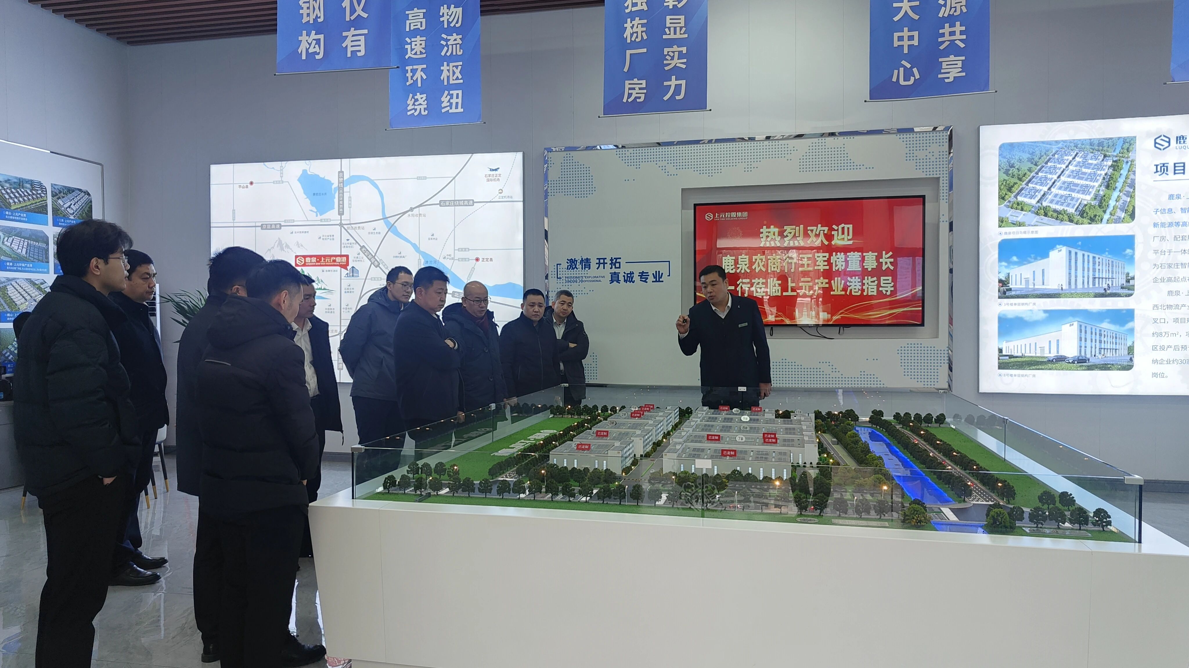 2024年1月18日,鹿泉農(nóng)商行王軍悌董事長(zhǎng)一行蒞臨項(xiàng)目指導(dǎo)考察,上元控股集團(tuán)董事長(zhǎng)林平、華北區(qū)域總經(jīng)理夏曉永、融資部總監(jiān)李勇、石家莊項(xiàng)目總經(jīng)理丁喜龍及各部門主要負(fù)責(zé)人陪同接待。