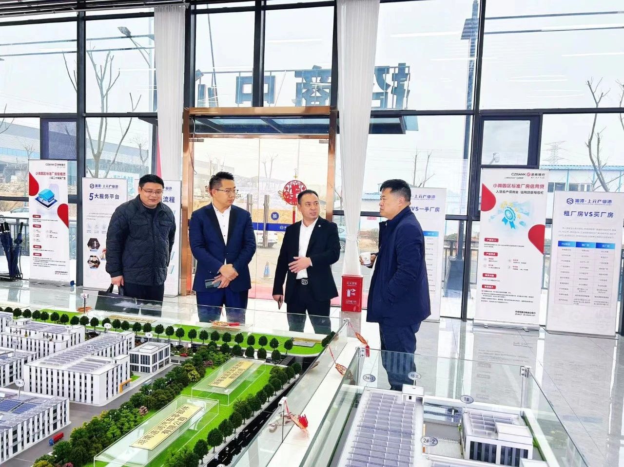 3月5日下午湘潭市雨湖高新區(qū)管委會黨工委書記張磊、區(qū)管委會副主任劉一琛、區(qū)經(jīng)濟(jì)合作局副局長吳俊良、雨高集團(tuán)副總經(jīng)理鄧堅一行領(lǐng)導(dǎo)蒞臨項目進(jìn)行參觀考察,上元控股集團(tuán)副總裁梅建剛、湘潭上元產(chǎn)業(yè)園發(fā)展有限公司總經(jīng)理謝辭及各部門主要負(fù)責(zé)人陪同接待。