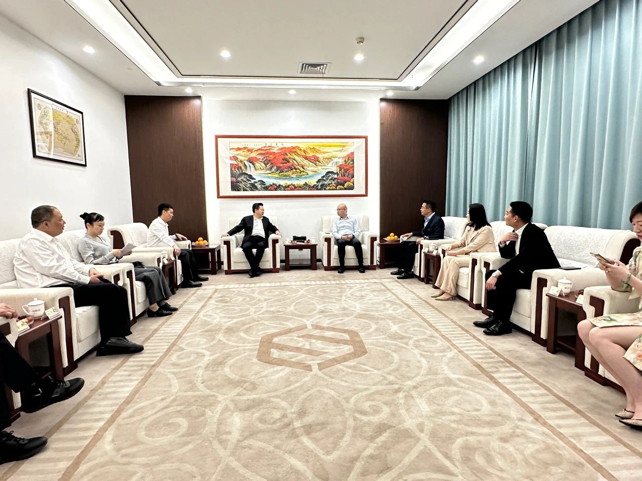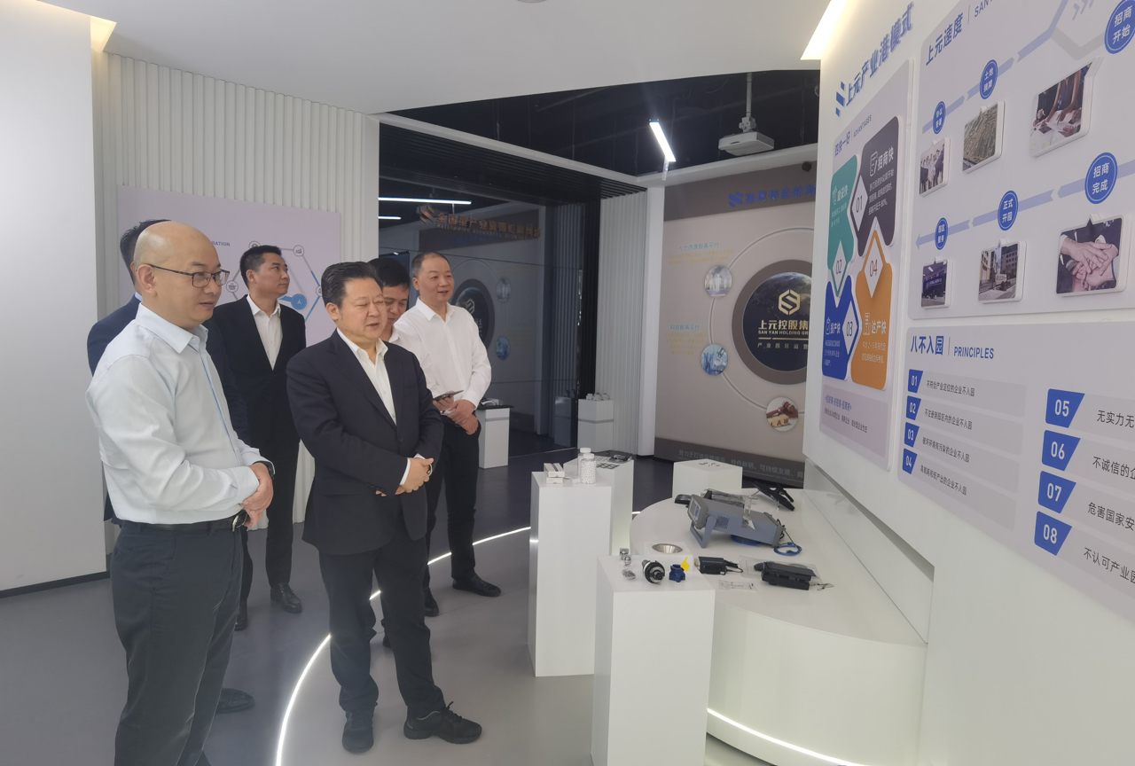 2024年5月7日, 湘潭市委書記劉志仁,湘潭市委常委、市委秘書長(zhǎng)丁誠(chéng),湘潭市接待服務(wù)中心主任袁絢,湘潭市政府駐北京辦事處主任任志強(qiáng),湘潭市商務(wù)局副局長(zhǎng)喻暉,湘潭市委改革辦專職副主任彭石,湘潭市委督查專員趙洪杰等一行蒞臨上元控股集團(tuán)(北京總部)參觀考察。上元控股集團(tuán)董事長(zhǎng)林平、副總裁梅建剛及各部門負(fù)責(zé)人陪同接待。