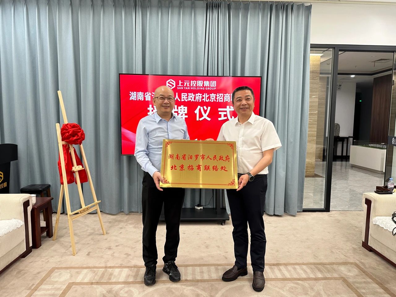 2024年5月9日,湖南省汨羅市人民政府北京招商聯(lián)絡(luò)處揭牌儀式在上元控股集團(tuán)北京總部舉行,汨羅市委書記朱平波、汨羅市高新區(qū)投資促進(jìn)中心主任羅冬云、汨羅市投資促進(jìn)事務(wù)中心主任仇全、上元控股集團(tuán)董事長林平等領(lǐng)導(dǎo)參加本次儀式,朱平波書記和林平董事長共同為“湖南省汨羅市人民政府北京招商聯(lián)絡(luò)處”揭牌。