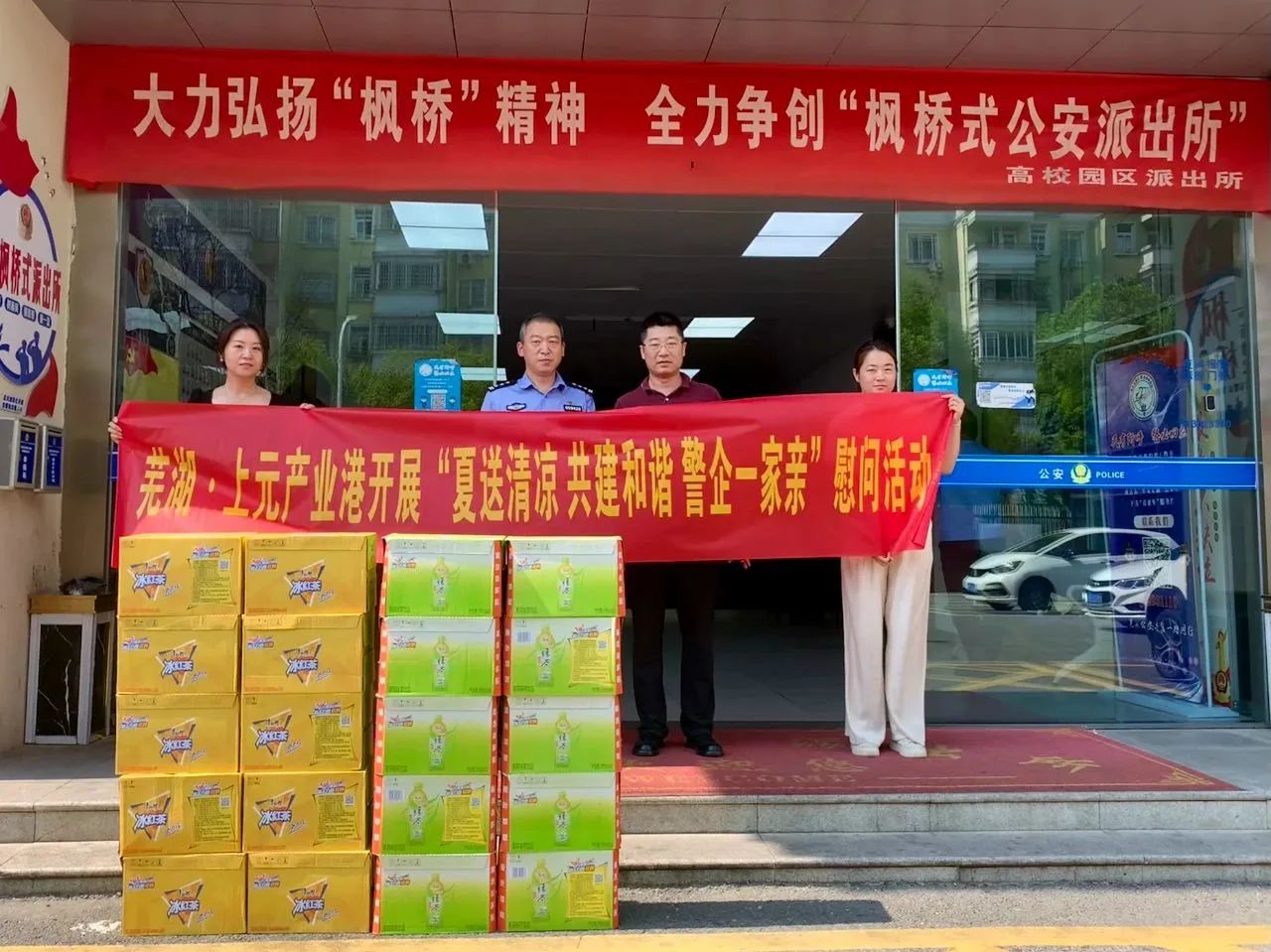 為表達(dá)對轄區(qū)派出所民警的崇高敬意和感謝,體現(xiàn)警民一家親,浙江上一元物業(yè)管理有限公司蕪湖分公司物業(yè)團(tuán)隊(duì)于7月23日下午與蕪湖上申產(chǎn)業(yè)園管理有限公司總經(jīng)理耿軼前往高校園區(qū)派出所開展“夏日送清涼”活動(dòng),慰問高溫下堅(jiān)守在一線的警務(wù)工作者,為堅(jiān)守崗位的民警們送上解暑物資,給他們在酷暑之中帶來絲絲涼意。