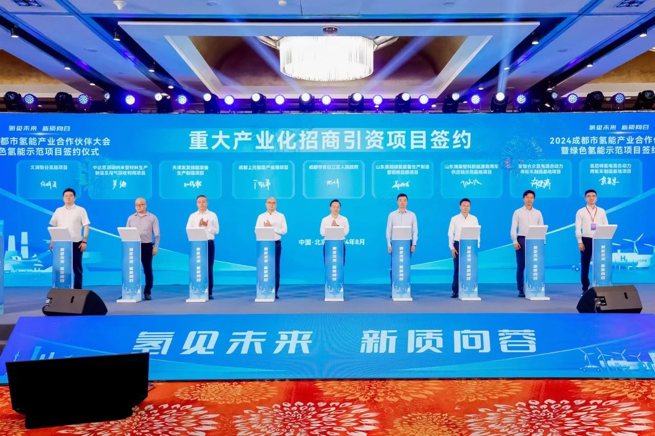 8月2日,由成都市投資促進(jìn)局和成都市青白江區(qū)人民政府共同主辦的2024成都市氫能產(chǎn)業(yè)合作伙伴大會(huì)暨綠色氫能示范項(xiàng)目簽約儀式在北京舉行,成都市人大常委會(huì)黨組副書記、副主任謝瑞武,四川省經(jīng)合局、經(jīng)濟(jì)合作促進(jìn)中心主任劉軍,青白江區(qū)委副書記、區(qū)長(zhǎng)王海波等領(lǐng)導(dǎo)出席儀式。上元控股集團(tuán)董事長(zhǎng)林平、副總裁汪洋受邀出席?,F(xiàn)場(chǎng)百余家企業(yè)齊聚一堂,共話氫能產(chǎn)業(yè)發(fā)展前景。