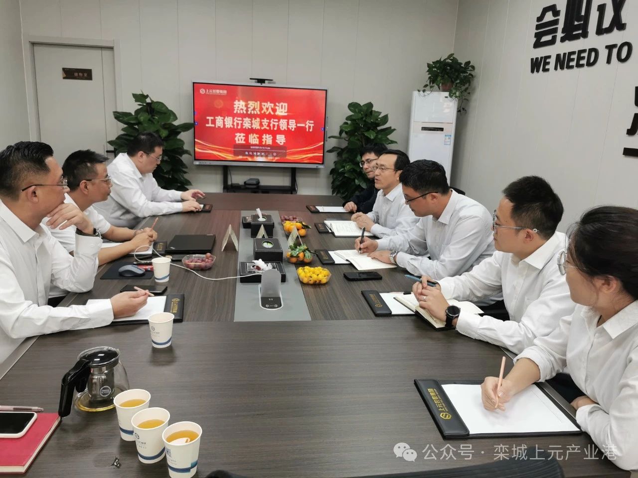 隨后,雙方進行了交流座談會,工商銀行領(lǐng)導介紹了目前的主營業(yè)務,王茂平副總裁講解了上元控股集團的發(fā)展歷程及業(yè)務實力,侯昌總經(jīng)理也介紹了欒城項目的規(guī)劃、招商情況及園區(qū)交付后的運營服務等。雙方圍繞園區(qū)建設、招商客戶金融支持等多方面進行討論,在融洽的氣氛下洽談雙方合作方向。 此次考察交流在友好的氛圍中落下帷幕,工商銀行領(lǐng)導表示,后續(xù)將為園區(qū)企業(yè)提供優(yōu)質(zhì)優(yōu)惠的金融服務。雙方將保持良好的合作關(guān)系,進一步拓展合作領(lǐng)域,發(fā)揮各自優(yōu)勢,推動雙方更高起點、更深層次的合作。