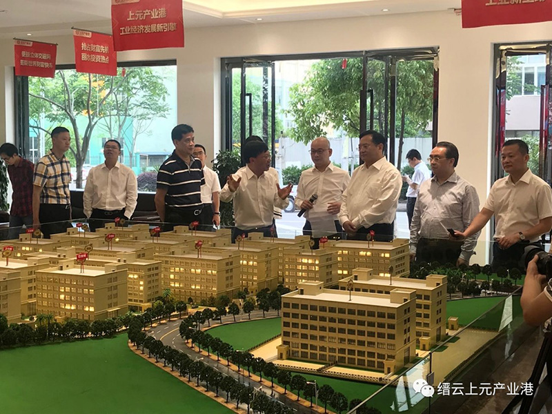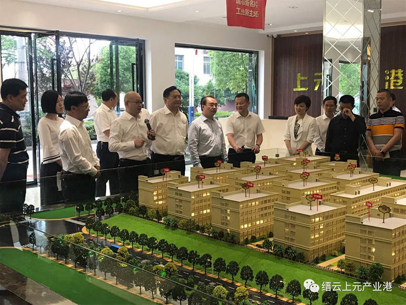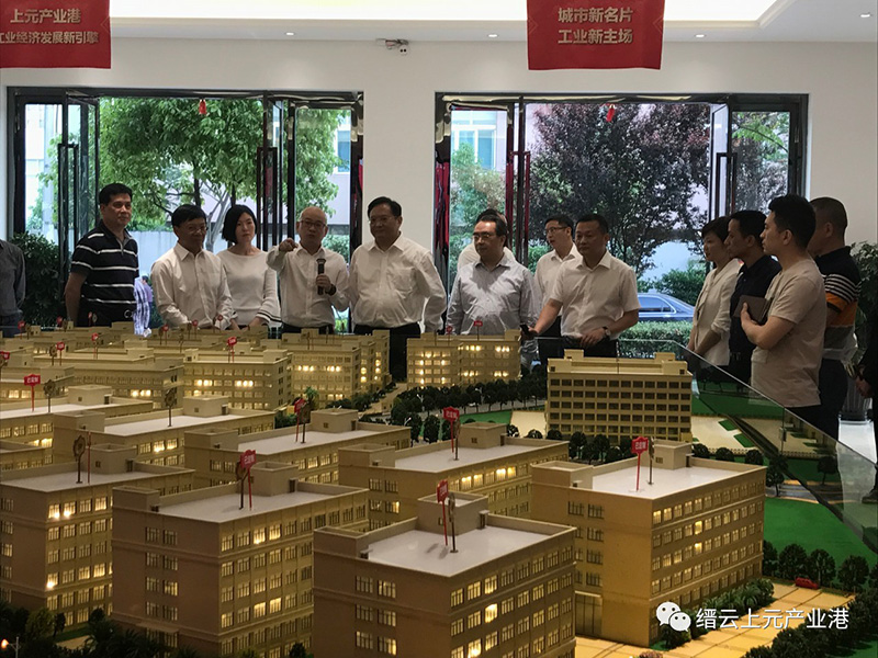 2018年5月3日下午,麗水市委書記張兵、副市長徐光文、縉云縣委書記楊秀清、縣長李一波、縣委副書記王正飛及市、縣相關(guān)部門負責(zé)人來到上元產(chǎn)業(yè)港展示中心,在展廳的沙盤前,張兵書記聽取了上元企業(yè)董事長林平的工作匯報。