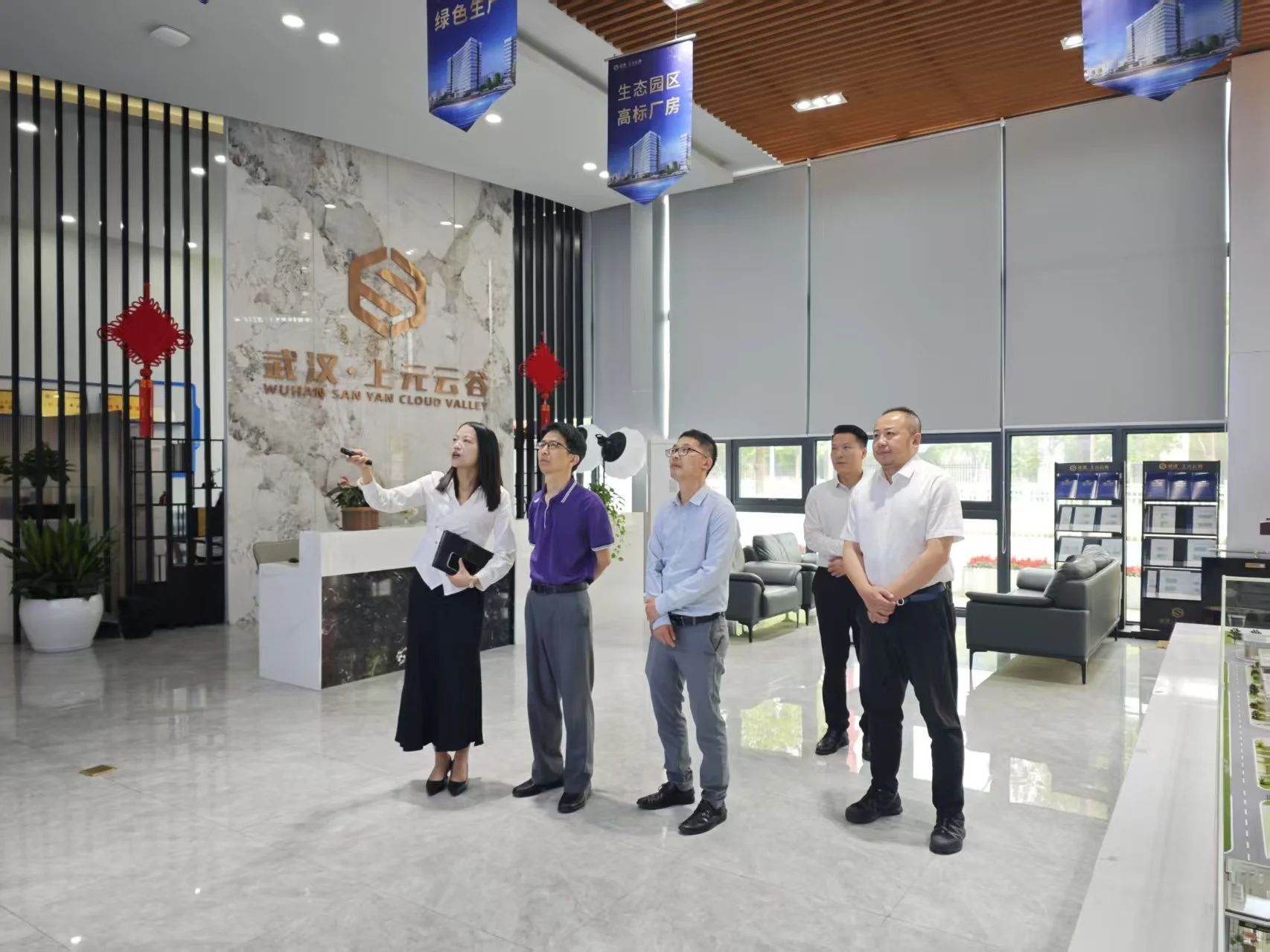 在項目現(xiàn)場,講解員周巧麗為考察團(tuán)一行介紹了武漢·上元云谷的整體布局、前瞻規(guī)劃以及園區(qū)的招商運營情況等。目前,項目一期、三期已投產(chǎn)運營,并憑借優(yōu)越的地理位置、完善的配套規(guī)劃以及專業(yè)的招商服務(wù),吸引了眾多優(yōu)質(zhì)企業(yè)的入駐,展現(xiàn)出強(qiáng)大的產(chǎn)業(yè)聚集效應(yīng)和發(fā)展?jié)摿?。考察團(tuán)在聽取介紹后,對上元控股集團(tuán)在產(chǎn)業(yè)運營方面展現(xiàn)出的專業(yè)能力和項目呈現(xiàn)出的良好發(fā)展態(tài)勢給予了高度贊譽。